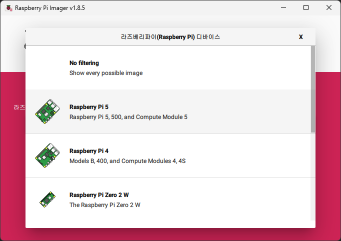 STEP 1. Raspberry Pi Imager에서 장치 선택