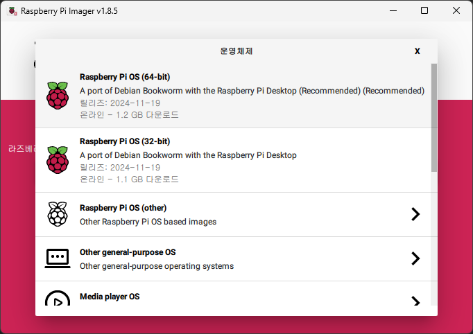 STEP 1. Raspberry Pi Imager에서 운영체제 선택